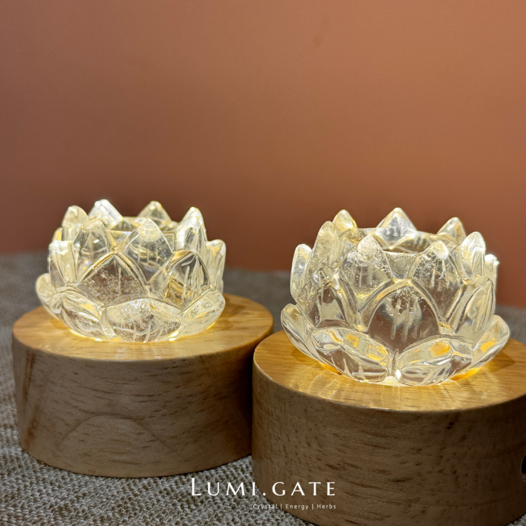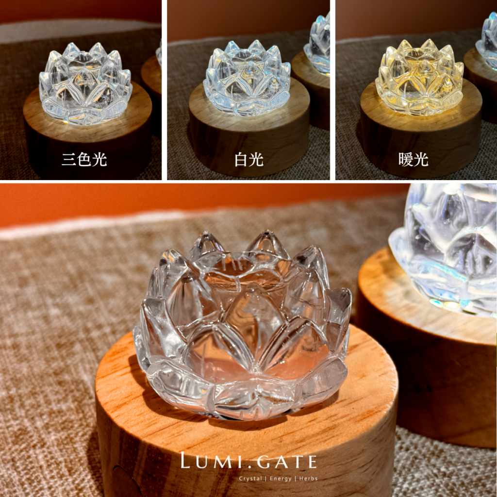 這款水晶蓮花燈座,以巴西高頻白水晶雕刻而成的蓮花,搭配柔和光源底座,讓光從水晶內部緩緩透出,呈現純淨而寧靜的能量氛圍。